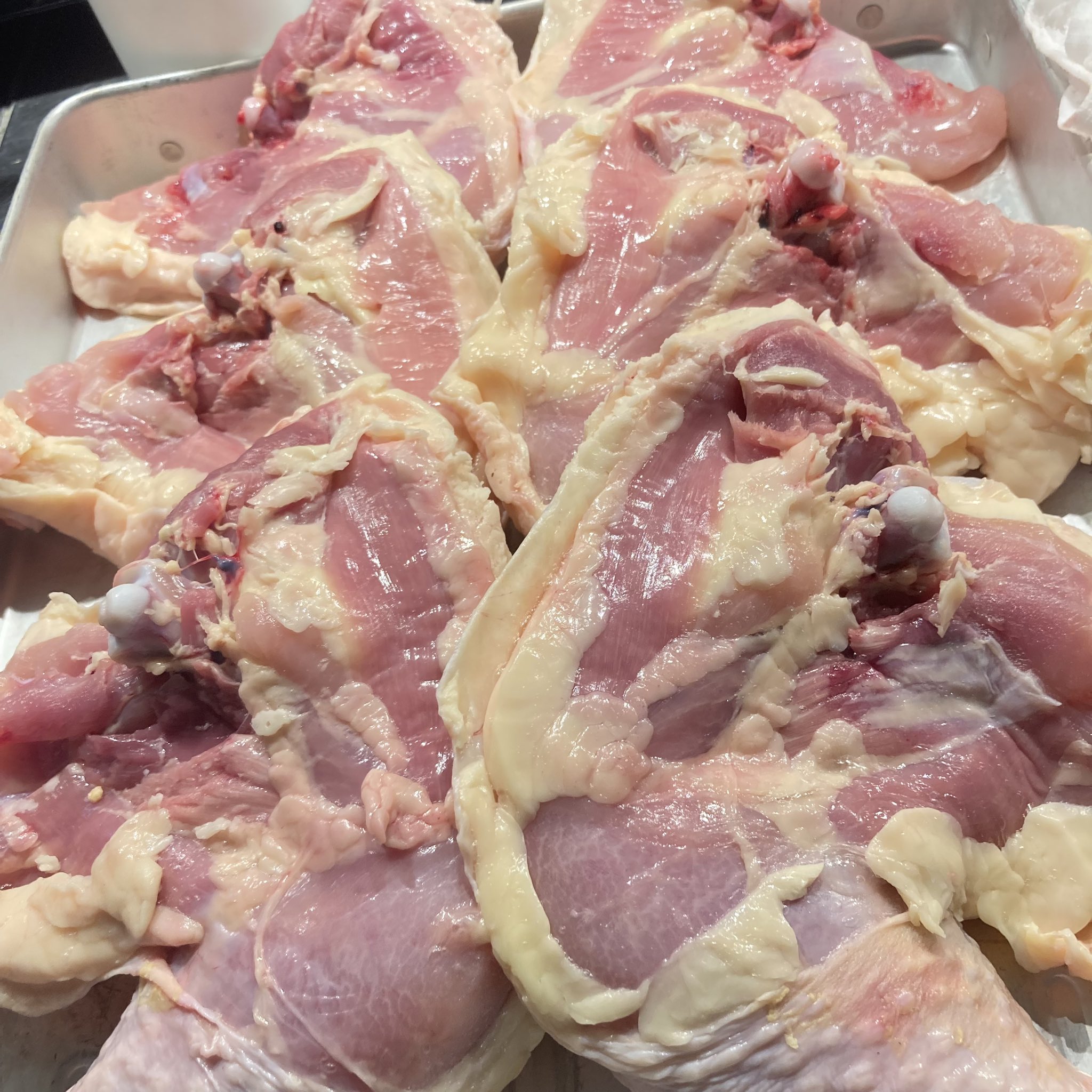 皮の旨みときめ細かい身との相性が最高の鶏!!皮も分厚いので1日乾燥させてから使うとよりおいしい鶏肉なりそう👌
